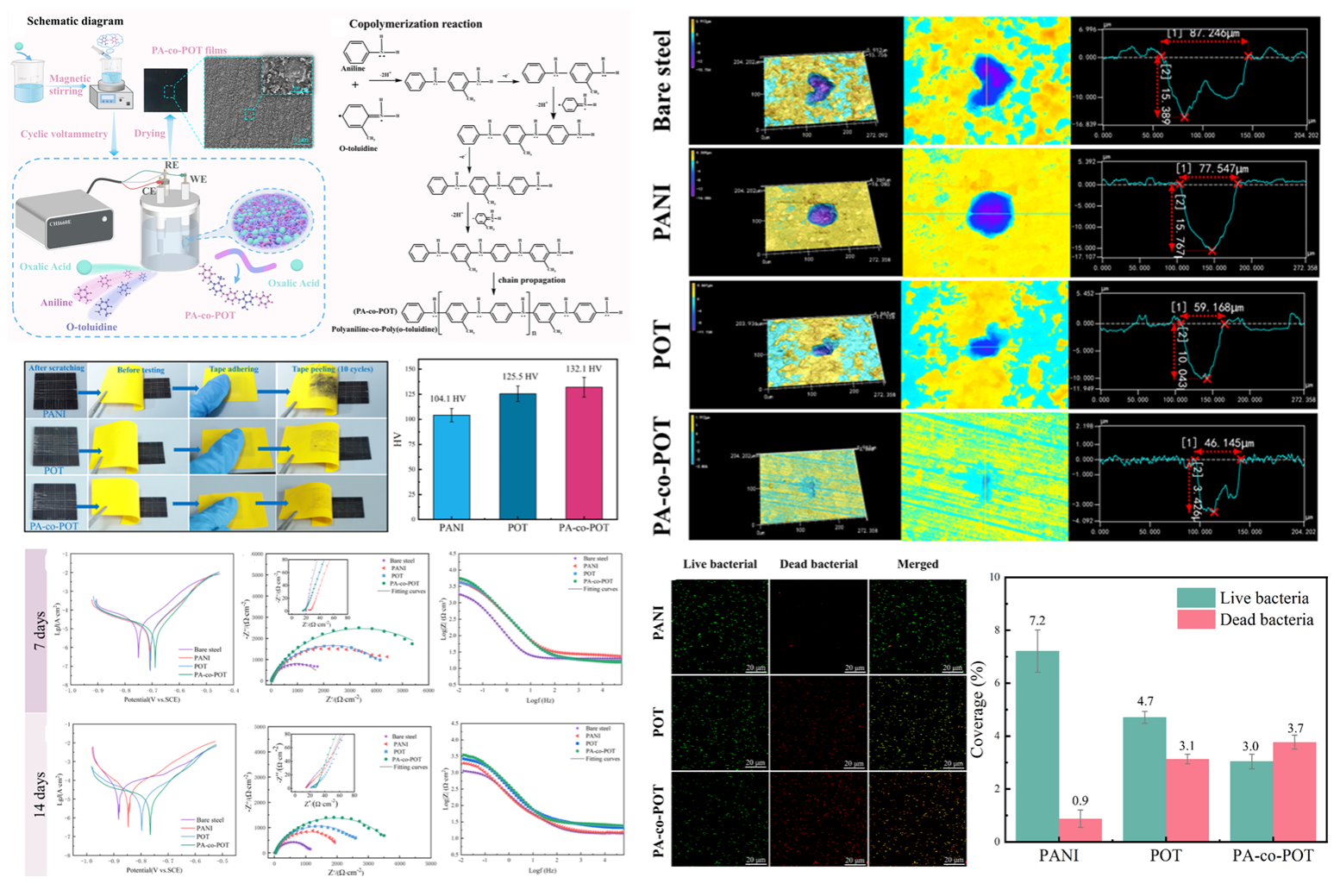 图1 PA-co-POT共聚薄膜的制备过程、机械稳定性和耐腐蚀研究