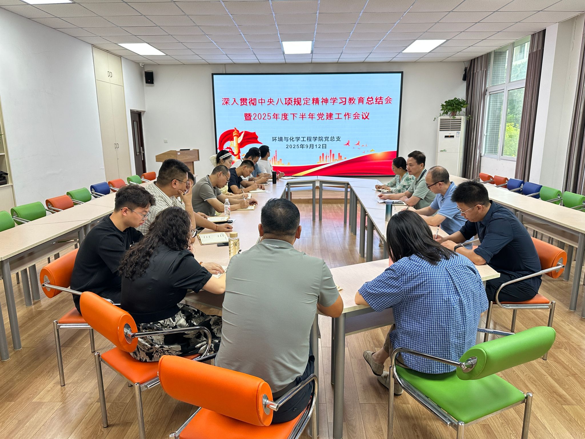 9月12日上午,学院党总支在慎思楼4-206会议室,召开“深入贯彻中央八项规定精神学习教育总结会暨2025年度下半年党建工作会议”。会议由党总支书记刘健主持,学院领导班子成员、党总支委员、各党支部书记及委员参加会议。